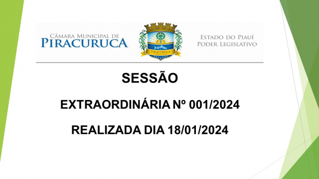 RESUMO DA SESSÃO EXTRAORDINÁRIA Nº 001/2024, DA CÂMARA MUNICIPAL DE PIRACURUCA-PI.